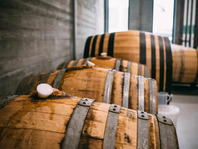 2. 咖啡果脱皮后,放入朗姆酒桶低温发酵